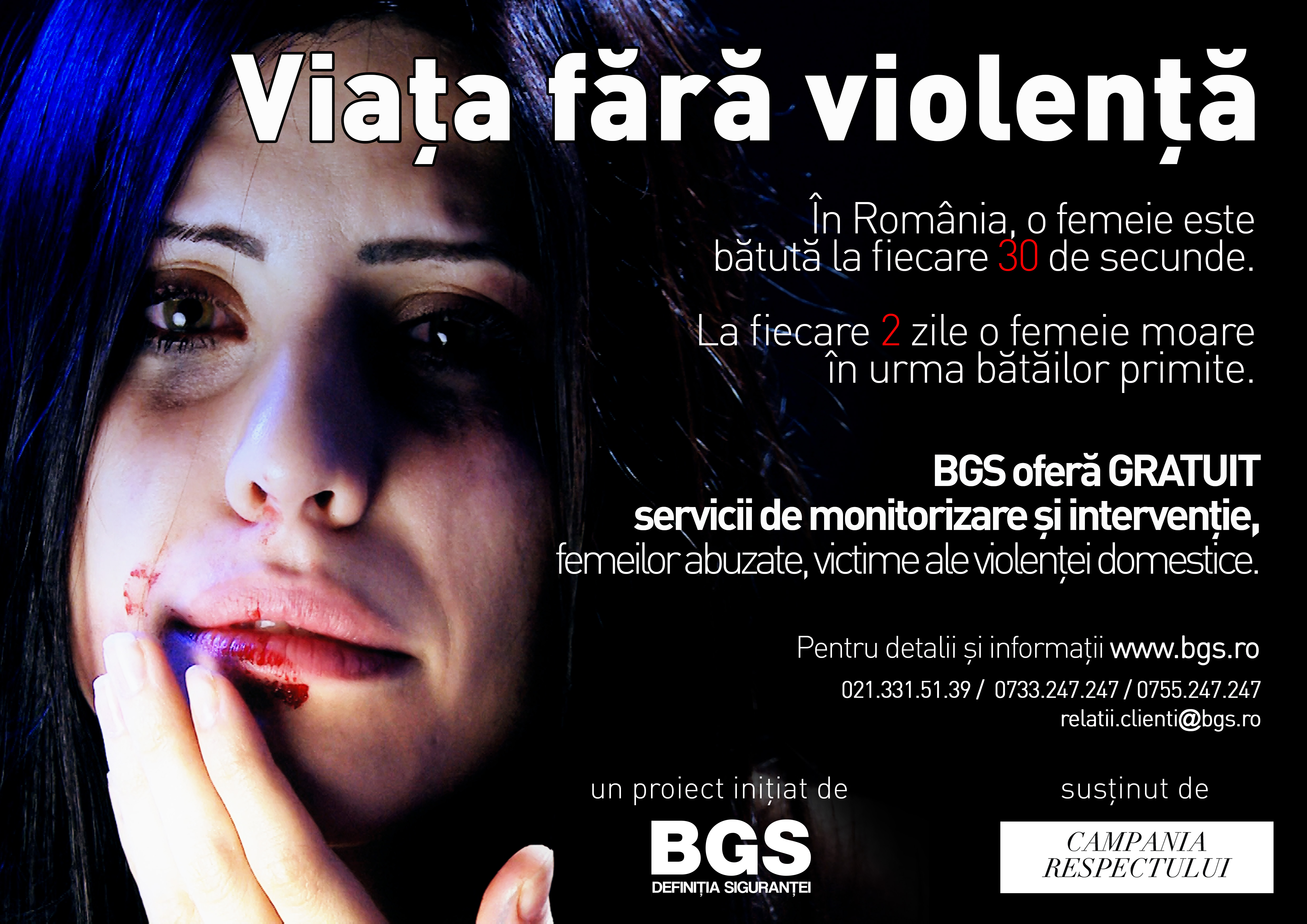 In anul 2014, BGS a demarat campania “Viata fara violenta”, o campanie prin care oferim femeilor abuzate servicii gratuite de monitorizare si interventie.